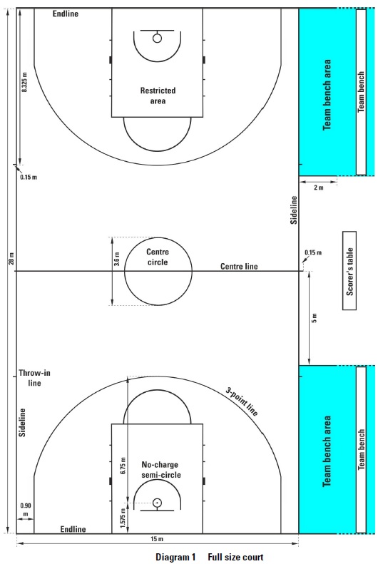 Ilustração 1 - Recinto de jogo (in FIBA-OBR Basketball equipment 2024)
