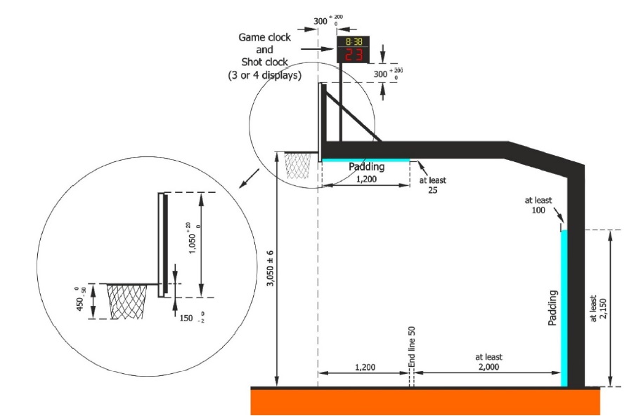 Ilustração 1 - Recinto de jogo (in FIBA-OBR Basketball equipment 2024)