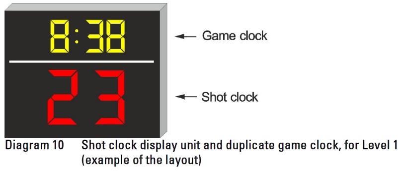 - O relógio de jogo com contagem regressiva deve estar colocado claramente visível para todos os participantes no jogo e espectadores, com sinal sonoro quando atinge o 00:00;